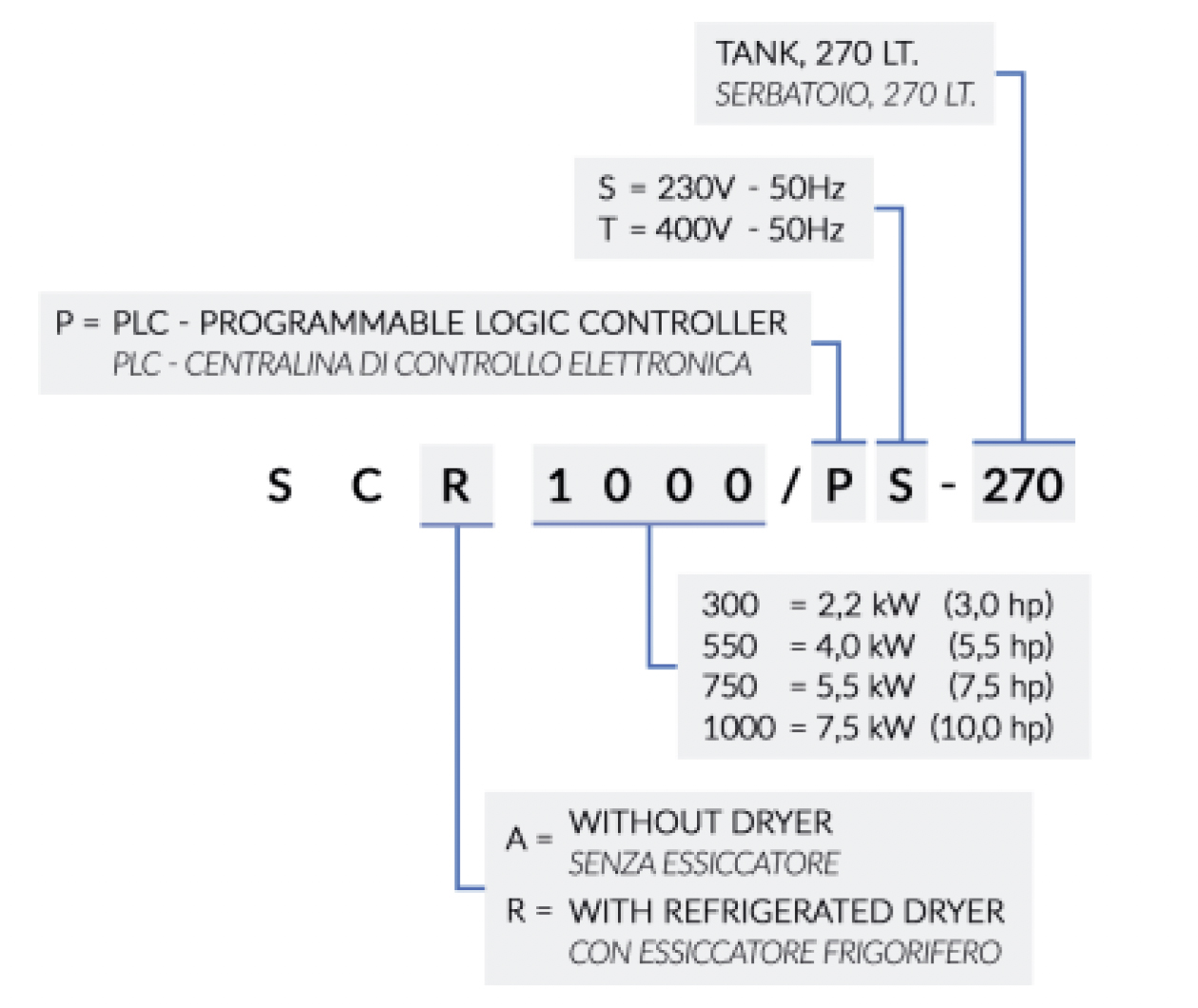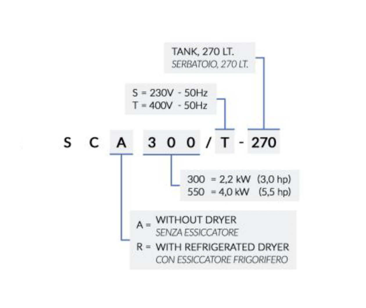 | Aria resa a 8 bar | 240 lt/min | 240 lt/min | 410 lt/min | 630 lt/min | 850 lt/min | 240 lt/min | 240 lt/min | 410 lt/min | 630 lt/min | 850 lt/min |
